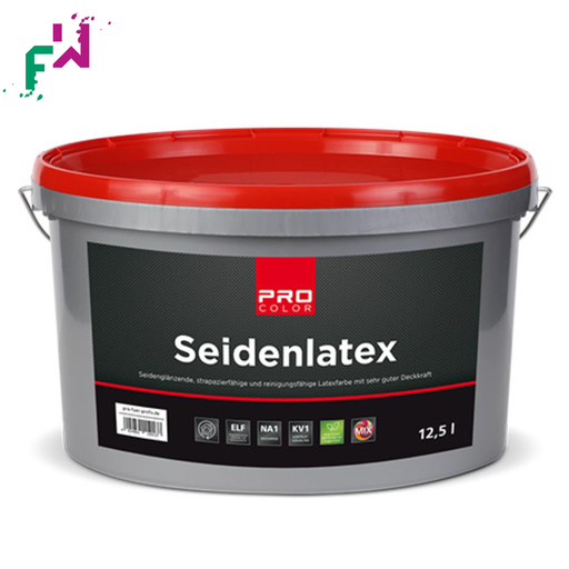 Die Seidenlatex Weiß 12,5 Liter PRO Color ist eine hochwertige, wasserbasierte Latexfarbe für den Innenbereich, speziell entwickelt für stark beans...